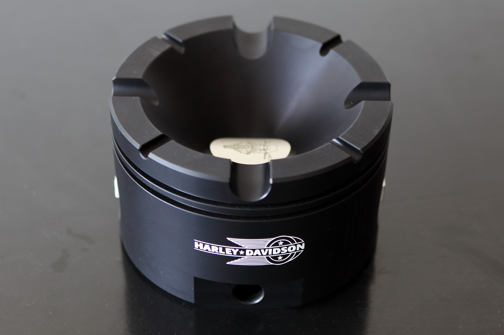 - Solid aluminum ashtrays crafted in the shape of an engine piston.