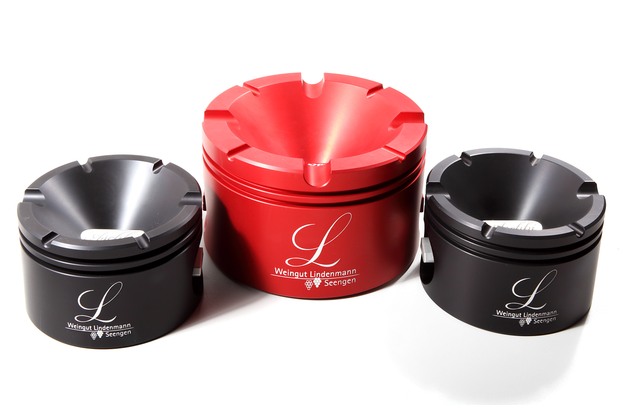 At Weingut Lindenmann, a red D190 and two black D140 mm Äschbis are now on display and in use. The beautiful logo stands out perfectly on the glossy anodized surface! The large red model is placed directly in the charming wine shop. Opening hours can be found on the Lindenmann website.