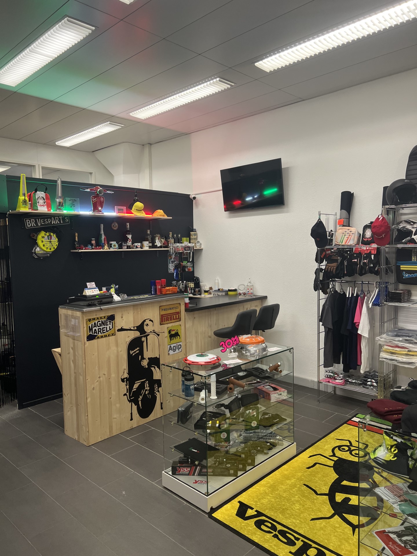 A medium-sized Äschbi D140 can be admired at Roberto’s place, alongside classic and beautifully restored Vespas!