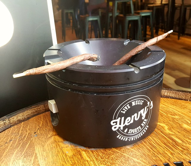 Henrys in Baden features two large Äschbis placed outside at the entrance, each mounted on an oak barrel and secured with a mounting block. They have been in daily heavy-duty use for over four years now!