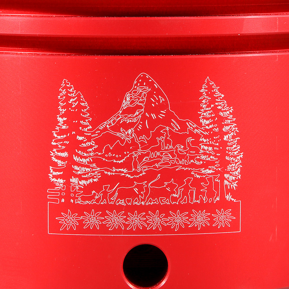 The ashtrays can be laser engraved with predefined Swiss Edition logos! Most combinations are kept in stock and are therefore usually ready for shipment more quickly. The laser engravings are white on the colors black, red, blue, and gold, and dark gray to near-black on the color gray.